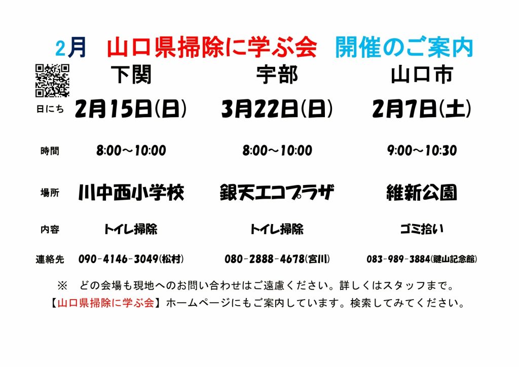 (ご案内) 【山口市掃除に学ぶ会】2月7日(土)9:00 維新公園