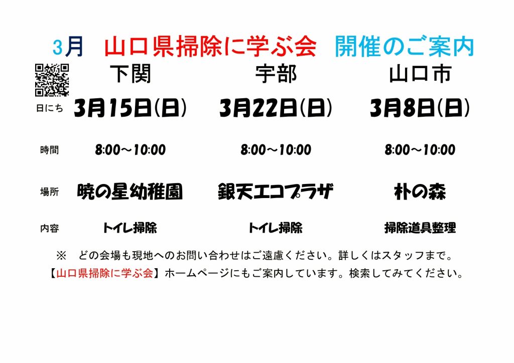 (ご案内) 【山口市掃除に学ぶ会】3月8日(土)8:00 検討中