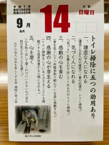 本日の「修身カレンダー」(寺井一郎先生監修)に「掃除の効用」が掲載されています。ありがとうございます。