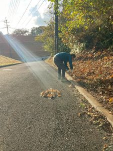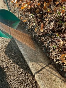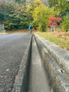 溝の中も先週一度きれいにしましたので、楽に、そして更にきれいになります。そして、やはり庭園ホウキが大活躍です。