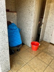 床拭きをしたあとの水が凍っていました。